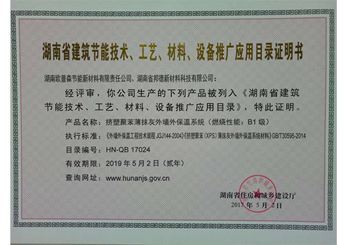 湖南省外墻內推廣證明2019-5-2
